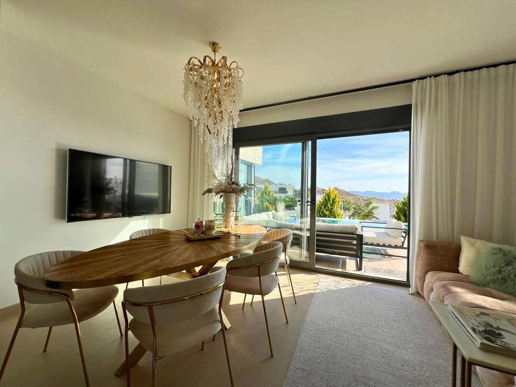 La planta principal alberga una cocina de concepto abierto, un salón amplio y luminoso, y dos dormitorios con dos baños, conectando perfectamente con las hermosas zonas exteriores.
