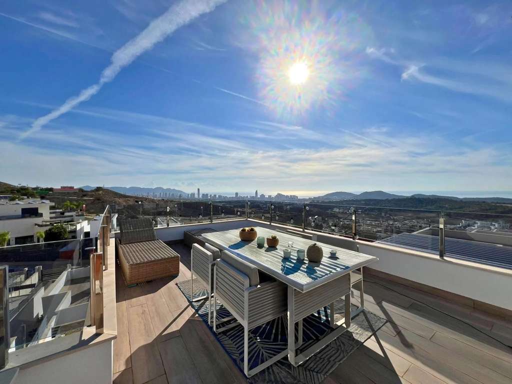 Villa Barcelona 11 es una villa de lujo diseñada por especialistas que combina a la perfección la elegancia moderna con impresionantes vistas panorámicas al mar Mediterráneo, el skyline de Benidorm y las montañas circundantes. Con 5 amplios dormitorios y 4 baños, esta propiedad ofrece un estilo contemporáneo con comodidades de alta gama distribuidas en tres niveles.