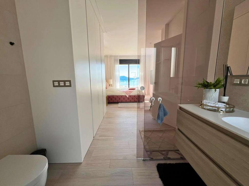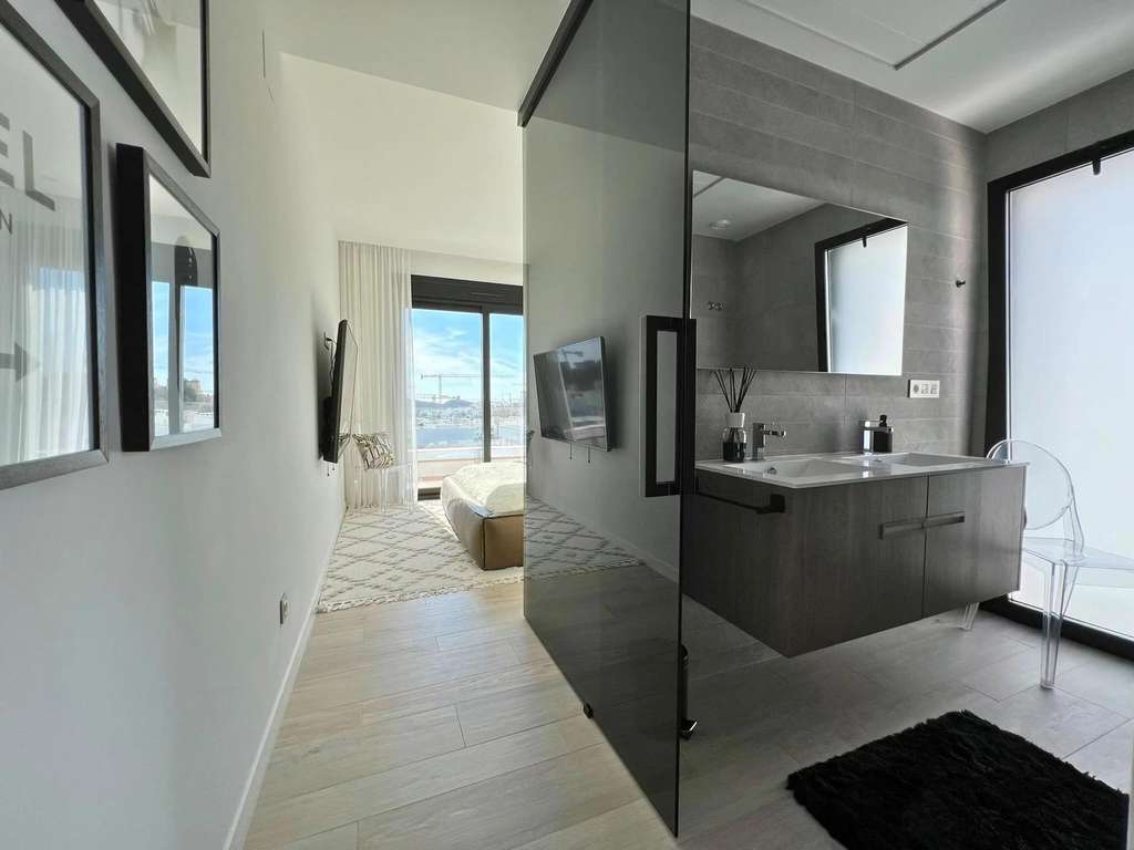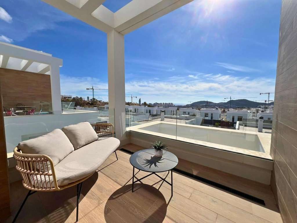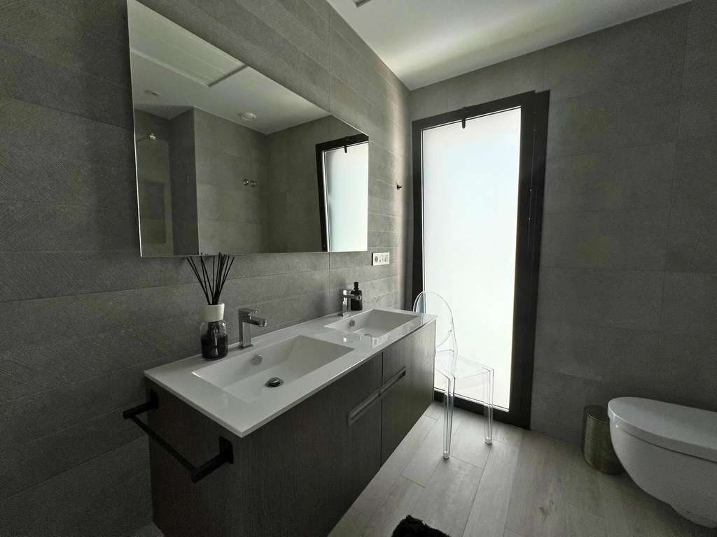 La planta inferior dispone de un jardín privado con una piscina espectacular y una acogedora zona de estar exterior, creando un espacio ideal para relajarse y disfrutar del clima mediterráneo.