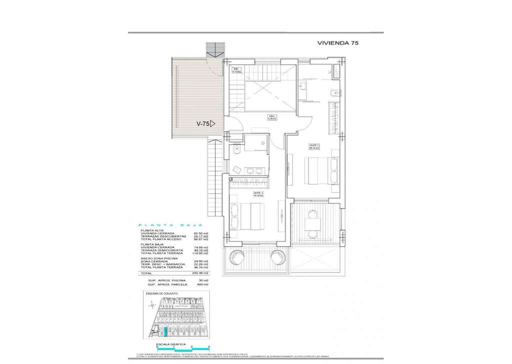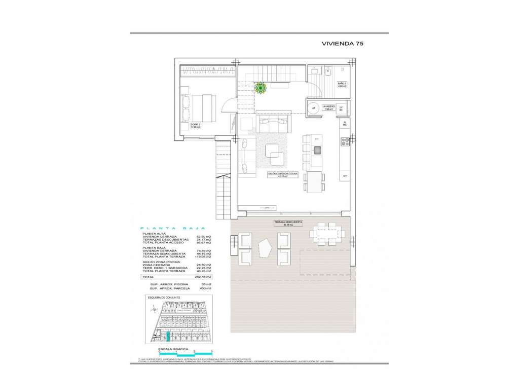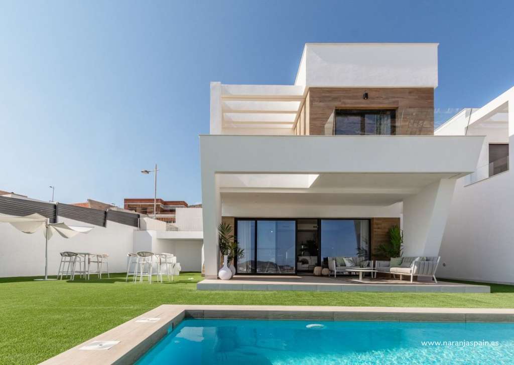 Nueva construcción de un exclusivo complejo residencial de villas ubicado en Finestrat cerca de las maravillosas playas de Benidorm. Nuevo modelo de hermosa villa con casa de invitados en la parcela. Hay 17 villas de este tipo a la venta. La villa está construida en dos plantas. En la planta baja, hay un luminoso salón, con grandes ventanales y acceso directo a la piscina y jardín, dormitorio y baño. En el primer piso, hay dos habitaciones tipo suite, con acceso a una terraza abierta. Se construye una casa de invitados en un nivel, que consta de un dormitorio y un baño, además de esto, hay una acogedora terraza con acceso a la villa principal, piscina y jardín.