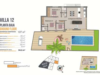 Villas amplias y luminosas con 3 dormitorios y 2 baños, cocina abierta con salón-comedor, hermosa terraza, jardín privado con la piscina y plaza de aparcamiento.