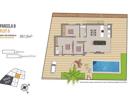 Villas amplias y luminosas con 3 dormitorios y 2 baños, cocina abierta con salón-comedor, hermosa terraza, jardín privado con la piscina y plaza de aparcamiento.