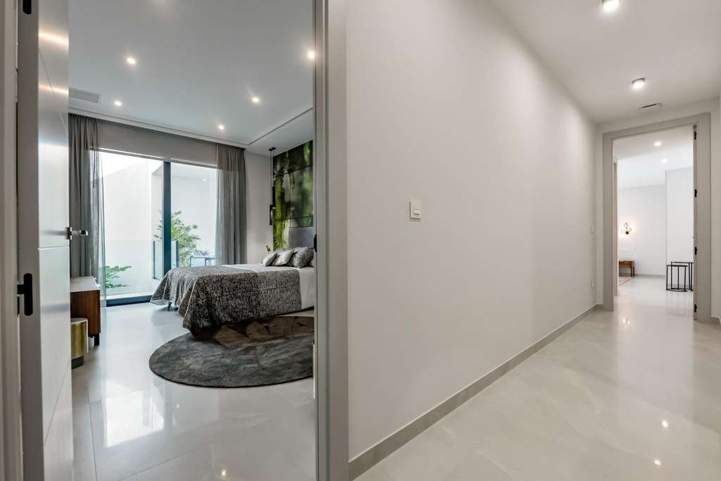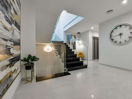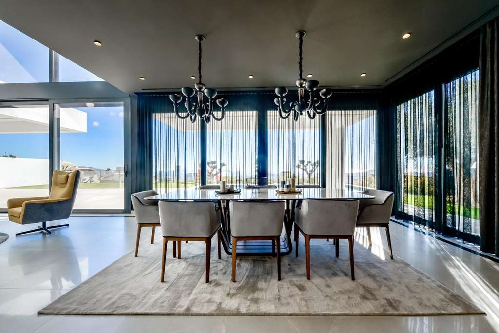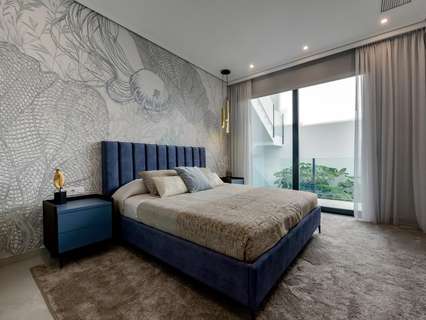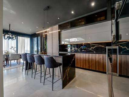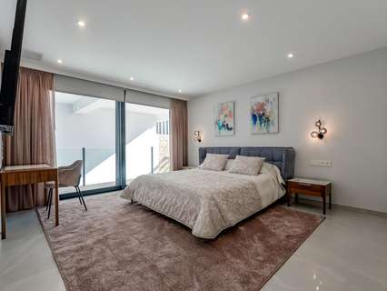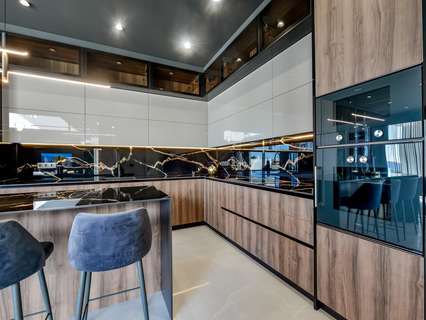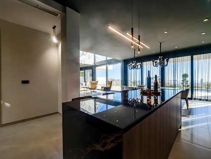 VILLA DE LUJO EN FINESTRAT CON VISTAS AL MAR Villa de lujo de nueva construcción con vistas al mar en Sierra Cortina, Finestrat. Llegando a la Urbanización hay un muro de piedra natural con una altura de 7 metros y las puertas automáticas de acceso al chalet llegando al garaje cubierto a nivel de calle con doble altura, luz natural y jardín con palmeras de diferentes alturas de 180 m2, una sala acristalada de 78 m2 con ascensor, escalera interior, guardarropa y espacio suficiente para poner sillones, convertir este espacio en un despacho o simplemente una sala de espera para visitas. La siguiente planta de 190 m2 de espacio cerrado está situada por debajo del nivel de la parcela pero 3 metros por encima del nivel de la calle y por tanto con luz natural. Se puede acceder a ella por el ascensor o la escalera interior del chalet, o por la escalera exterior del garaje, en este último caso sólo se puede acceder a los pasillos exteriores, al cuarto de instalaciones o a la puerta principal de esta planta, realizando así el mantenimiento de la vivienda sin necesidad de entrar dentro de la casa. Dentro de esta planta encontraremos 4 amplios dormitorios, salón con patio inglés de 17 m2 con la escalera de acceso a la parcela, lavadero, 2 baños, pasillos exteriores de 40 m2 y cuarto de instalaciones. Cuando subimos a la planta principal por 3 accesos vemos un salón de 130 m2 con doble luz, cocina abierta, aseo de invitados, vistas panorámicas al mar, y piscina de 54 m2 de laminado, un precioso jardín y 2 amplias terrazas cubiertas. A la planta de dormitorios accedemos por ascensor o escalera interior donde veremos un Dormitorio Principal de más de 50 m2 con baño en-suite, vestidor y terraza, dos dormitorios de unos 20 m2 cada uno, un baño y la terraza para estos dormitorios. Villa está equipada con Led exterior e interior, calefacción por suelo radiante, domótica, cristales Gamma de alta, aire acondicionado centralizado, persianas automáticas, techos altos y mucho más: Salón- 95 m2 Dormitorios- 8 (principal 52 m2 y secundario 20 m2) Baños- 5 Parcela- 890 м2 Construido- 998 м2 Piscina- 12 X 5 Cuatro Plantas Jardín (20 m2) - totalmente terminado con sistema de riego automático Ascensor (Otis) dentro de la casa Calefacción por suelo radiante Domótica (control de aire acondicionado, suelo radiante, iluminación interior y exterior, persianas) Persianas eléctricas Luces exteriores e interiores marca Siemens Techos altos de hasta 3,20 m de altura Impresionantes vistas al mar Una planta para invitados Calefacción aerotérmica Cocina totalmente equipada con isla Armarios empotrados Suelo de gres porcelánico Pared con piedra natural tallada a mano Garaje para 4 vehículos con puertas automáticas 160 m2 + hall de entrada 78 m2 Parking abierto 37 Chalet situado en el complejo Sierra Cortina, junto a dos campos de golf, parques temáticos, un gran centro comercial y a pocos minutos de las playas de Benidorm. Finestrat situado en la comarca de la Marina Baixa de la Costa Blanca, cerca de la vecina Benidorm y a unos 40 kilómetros de la ciudad de Alicante y del aeropuerto internacional. El pueblo está situado en la ladera del Puig Campana y ofrece hermosas vistas de las montañas, la costa y el mar Mediterráneo.