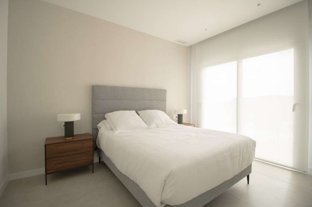 Las modernas villas disponen de 3 dormitorios, 3 baños, cocina americana con amplio salón, armarios empotrados, terraza, solarium, jardín privado con la piscina y plaza de aparcamiento.