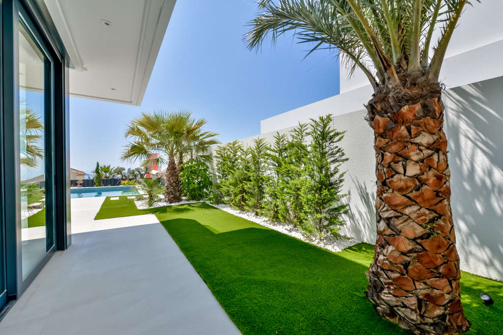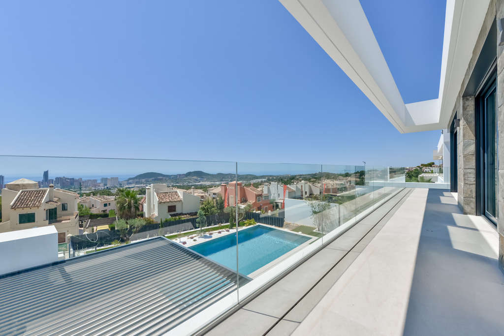 Ubicadas en la prestigiosa zona de Golf Bahía, estas exclusivas villas ofrecen una experiencia de vida inigualable. Con solo tres propiedades disponibles, cada villa ha sido diseñada para maximizar el confort y la privacidad. La ubicación es ideal para quienes buscan un entorno tranquilo sin renunciar a la proximidad al mar, situado a solo 4 km de distancia. Las villas ofrecen impresionantes vistas al mar, permitiendo disfrutar de la belleza del entorno desde la comodidad del hogar. Estas propiedades son perfectas para familias numerosas o para quienes desean espacios amplios, ya que cuentan con opciones de 4 a 8 dormitorios y de 4 a 5 baños, adaptándose a diversas necesidades familiares.EXTERIORESEl diseño exterior de las villas en Golf Bahía es simplemente espectacular. Cada propiedad cuenta con un jardín privado, ideal para disfrutar del aire libre y organizar reuniones familiares o con amigos. Además, las villas incluyen una terraza que ofrece un espacio adicional para relajarse y disfrutar de las vistas al mar. La presencia de una piscina privada en cada villa añade un toque de lujo y exclusividad, permitiendo a los residentes disfrutar de un refrescante baño en la privacidad de su hogar. El acceso a un garaje privado asegura la comodidad y seguridad de los vehículos de los residentes.INTERIORESEl interior de las villas en Golf Bahía está diseñado para ofrecer el máximo confort y funcionalidad. Los suelos de cerámica aportan un toque moderno y elegante a cada estancia. Las villas están equipadas con electrodomésticos de alta calidad, asegurando que la cocina y otras áreas del hogar sean prácticas y eficientes. La domótica integrada permite un control total de las funciones del hogar, desde la iluminación hasta la climatización, mejorando la comodidad diaria. Las persianas eléctricas ofrecen un control sencillo de la luz natural y la privacidad. Los armarios empotrados en los dormitorios proporcionan un amplio espacio de almacenamiento, manteniendo el orden y la organización en el hogar.FINESTRATFinestrat, en la provincia de Alicante, es un lugar que combina la serenidad rural con la proximidad a zonas turísticas populares. Aunque no sea un destino turístico principal, su encanto radica en su belleza natural y su ambiente tranquilo. El turismo en Finestrat se centra en su entorno montañoso y en su proximidad a atracciones como el parque temático Terra Mítica y sus calas cercanas, como Cala Finestrat, ideales para disfrutar del mar. El estilo de vida en Finestrat es apacible y orientado a la naturaleza. Los residentes disfrutan de la vida tranquila en un entorno rural, donde se valora la tranquilidad y se fomenta la cercanía comunitaria. La gastronomía local se basa en platos típicos de la región, con influencias mediterráneas. Finestrat ofrece un ambiente sereno y natural para aquellos que buscan una vida apacible cerca de destinos turísticos reconocidos en la Costa Blanca.