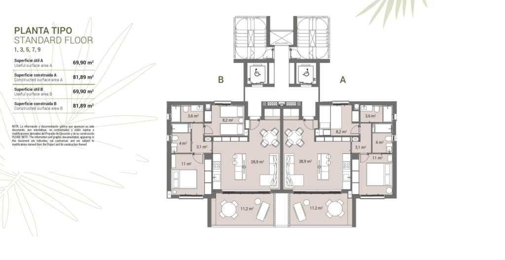 Varios apartamentos de 2 dormitorios están disponibles desde la 1ª a la 9ª planta del nuevo Residencial Navale; los precios empiezan desde 244.900 euros.