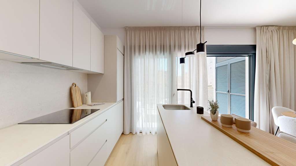Estos nuevos áticos en venta en Guardamar del Segura cuentan con una luminosa sala de estar de planta abierta, una moderna cocina totalmente equipada y 3 espaciosas habitaciones, cada una con armarios empotrados. Los dos baños contemporáneos completan el interior, ofreciendo elegancia y funcionalidad en cada rincón de la casa.