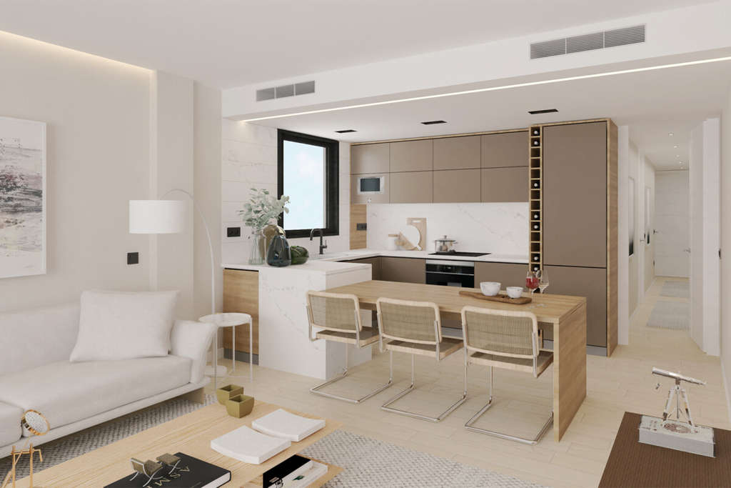 Estos nuevos apartamentos en venta cerca del pinar disfrutan del ambiente sereno del entorno del pinar. La íntima terraza sirve como un refugio tranquilo, perfecto para relajarse en medio de los relajantes sonidos de la naturaleza, ofreciendo una experiencia de estilo de vida única que resuena con la esencia de la vida mediterránea.