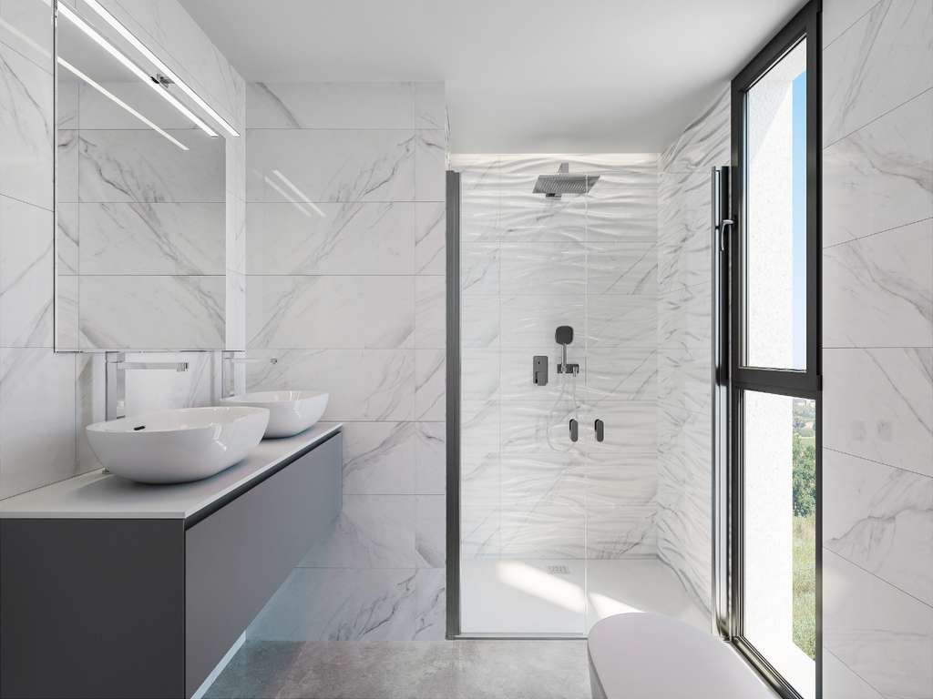 Cada casa está construida con materiales de alta calidad y un aspecto moderno. La cimentación y la estructura son de hormigón armado, los muros interiores están construidos con ladrillo hueco doble con aislamiento. En el interior , los pavimentos de gres de primera calidad aportan una estética elegante, mientras que la carpintería exterior de PVC con doble acristalamiento (Climalit) garantiza confort y eficiencia energética. Los dormitorios estarán equipados con armarios empotrados y los baños contarán con sanitarios de diseño, lavabos, inodoros, ducha a ras de suelo con mampara de cristal , espejo y hervidor eléctrico de 100L.