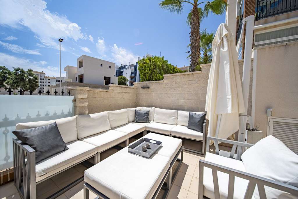 Ubicado en un cuidado residencial de estilo mediterráneo, este apartamento ofrece 70 m² construidos con 2 dormitorios y 2 baños, uno de ellos en suite. Dispone de un luminoso salón-comedor con cocina abierta y una amplia terraza de 40 m² con vistas al mar. Incluye plaza de parking subterráneo y trastero.