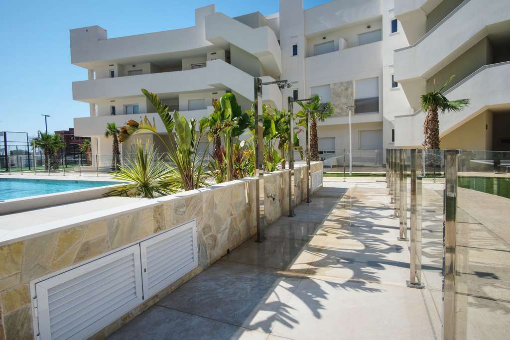 Costablancapropiedades presenta este elegante y moderno apartamento en planta baja, ubicado en un exclusivo complejo residencial en la cotizada zona de El Raso, Guardamar del Segura. Este apartamento, listo para entrar a vivir, combina comodidad, lujo y funcionalidad, ideal tanto para vivienda habitual como para vacaciones. El apartamento cuenta con dos dormitorios, uno de ellos con baño en suite en el dormitorio principal. El salón, con una moderna cocina americana, ofrece acceso directo a la terraza. El apartamento incluye una plaza de aparcamiento subterráneo privado con trastero, ideal para almacenamiento adicional o para guardar bicicletas y equipo de playa de forma segura. Esta exclusiva urbanización ofrece una amplia gama de servicios, incluyendo: - Piscinas comunitarias rodeadas de solárium. - Gimnasio totalmente equipado. - Pista de pádel para relajarse activamente. El Raso es una zona tranquila y bien cuidada a pocos minutos de las hermosas playas de Guardamar y del Parque Natural de La Mata. Tiendas, restaurantes y otros servicios están a poca distancia. Una combinación ideal de lujo, confort y una ubicación privilegiada hacen de esta propiedad una excelente inversión en la soleada Costa Blanca.