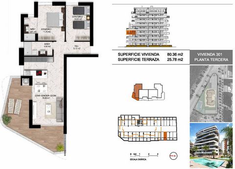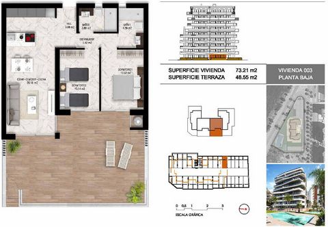 Descripción del objeto: Apartamentos que constan de una superficie construida de unas 102 m² - 192 m² (terrazas incluidas) con 2 dormitorios, 2 baños (1 en-suite), 1 salón / comedor con cocina y 1 terraza (a unos 23 m² - 110 m²). El residencial tendrá vistas abiertas a la Vega Baja gracias a su privilegiada ubicación frente al Río Segura y proximidad al Puerto deportivo. Estará compuesto por un edificio de estilo moderno de 32 viviendas de 2 dormitorios y 2 baños y amplias terrazas a partir de 23 m², plaza de parking subterránea y trastero privado cerrado. El edificio contará con 9 alturas siendo las más altas áticos con terraza principal y solárium privado. El residencial también contará con piscina comunitaria y zonas verdes de césped natural. Equipamiento adicional: Todos los materiales que utilizamos son de primera calidad. Ventanas de PVC con persianas eléctricas, baños con suelo radiante eléctrico y adicionalmente como oferta de lanzamiento incluimos en el precio de venta: Electrodomésticos e instalación de aire acondicionado por conductos frío/calor de la marca Johnson o similar, cortinas enrollables, lámparas, decoración, mobiliario, iluminación, sábanas, toallas, Smart TV, cafetera, tostadora y menaje de cocina. Ubicación de casa/solar: Es sobre todo la situación privilegiada que convierte está promoción en una oferta tan interesante: La urbanización se ubica an tan sólo 1.200 m del puerto deportivo de Guardamar del Segura y a 350 metros de las dunas y el pinedo protegidos. Se trata de un punto de partida ideal para su estancia en la Costa Blanca. Guardamar, a parte de diversos servicios y opciones para hacer la compra, ofrece la posibilidad de visitar el parque botánico Reina Sofía, las ruinas de un castillo árabe, una universidad de verano y un interesante programa en el centro cultural de la ciudad: la "Casa de Cultura". Cada miércoles se pone un mercado al aire libre que es visitado por sus habitantes y por veraneantes. Las ciudades más próximas son Elche, Alicante y Murcia. El aeropuerto de Alicante está situado a 30 km. Torrevieja, gran centro turístico, está igualmente a tan sólo 10 minutos de coche. Otros: Calificación energética está pendiente.