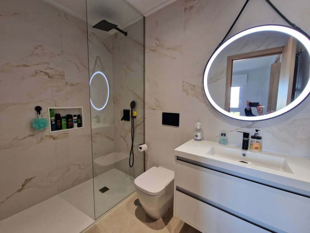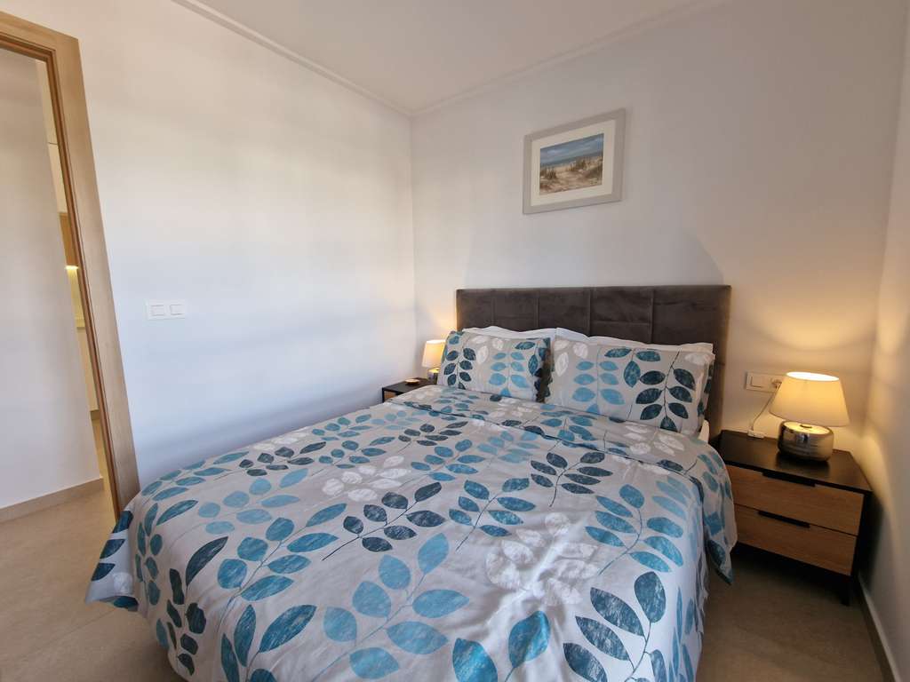 El apartamento cuenta con un salón-comedor de planta abierta, perfectamente conectado a una cocina moderna totalmente equipada. Los amplios ventanales inundan el espacio de luz natural y dan a la terraza privada, ideal para relajarse con vistas a los preciosos jardines comunitarios y a la piscina. La propiedad ofrece tres dormitorios dobles con armarios empotrados, incluyendo el principal con baño en suite. El segundo baño es igualmente moderno y elegante. El aire acondicionado totalmente instalado garantiza comodidad durante todo el año.