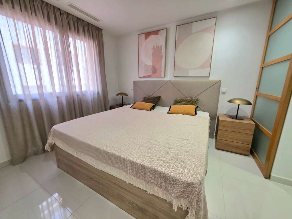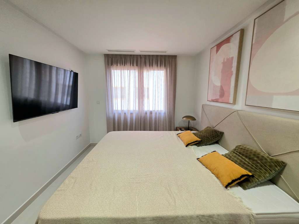 El apartamento cuenta con 2 amplios dormitorios dobles y 2 baños modernos , con una distribución equilibrada que ofrece 115 m² construidos . Ambos dormitorios cuentan con armarios empotrados , mientras que la orientación sureste garantiza una excelente luz natural durante todo el día. La luminosa sala de estar y comedor se abre directamente a un balcón privado de 15 m² , perfecto para disfrutar del sol de la mañana, cenar al aire libre o relajarse después de un día en la playa.