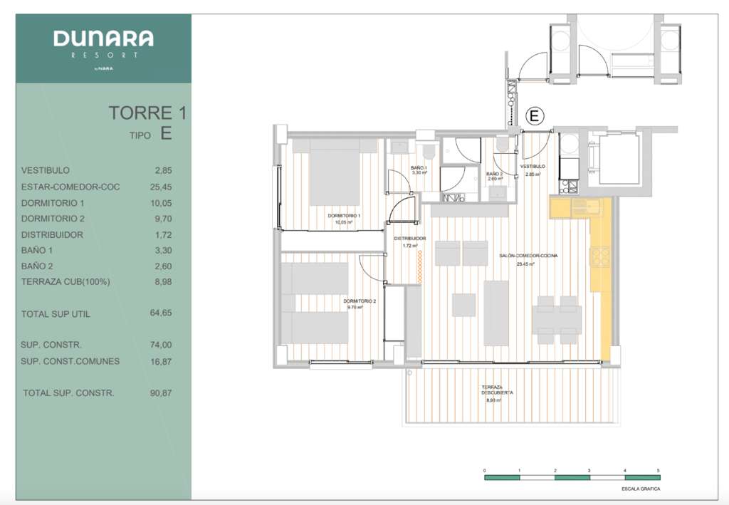 Los apartamentos incluyen dos dormitorios dobles con armarios empotrados , dos baños modernos y un salón-comedor de planta abierta con acceso directo a una terraza privada de aproximadamente 10 m² . Las cocinas tienen un diseño contemporáneo y se incluye preinstalación de aire acondicionado para mayor comodidad.