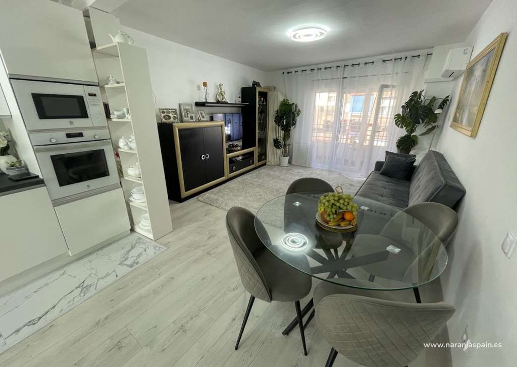 ¡Descubre tu nuevo hogar en el vibrante corazón de Guardamar del Segura! Este increíble apartamento, completamente reformado y listo para entrar a vivir, te ofrece todo lo que necesitas para disfrutar de una vida cómoda y moderna. Con sus 94 m², el piso cuenta con tres amplios dormitorios dobles, todos al exterior, que garantizan una excelente iluminación natural. La cocina americana está totalmente equipada, ideal para los amantes de la gastronomía que buscan un espacio funcional y elegante.Además, el apartamento se vende con todo incluido, a excepción de efectos personales, lo que facilita tu mudanza. Disfruta de momentos al aire libre en su acogedora terraza o balcón, perfectos para relajarte al final del día. El inmueble también dispone de dos trasteros, proporcionando espacio extra para almacenamiento. Situado en la segunda planta de un edificio con ascensor, este piso orientado al Norte, Sur y Este te asegura confort durante todo el año gracias a su aire acondicionado.Construido en 1980, el apartamento se encuentra en excelente estado de conservación y cuenta con armarios empotrados que optimizan el espacio. Su clase energética C tanto en consumo de energía como en emisiones de CO2 refleja su eficiencia. No pierdas la oportunidad de vivir en un entorno privilegiado con todas las comodidades a tu alcance. ¡Ven a verlo y enamórate de tu próximo hogar!