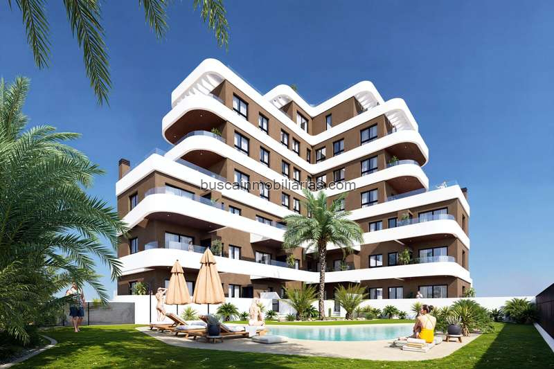 Descubre la experiencia definitiva de vida costera con Vincent Real Estate. Ubicada en la encantadora zona de Guardamar del Segura, esta exclusiva colección de 19 apartamentos ofrece una oportunidad excepcional para disfrutar de la serena belleza del Mediterráneo. Con impresionantes vistas al mar a solo 1,0 km de la costa, estas propiedades son perfectas para quienes buscan un estilo de vida tranquilo cerca de la playa.Estos apartamentos bellamente diseñados cuentan con una elección de dos o tres dormitorios y están equipados con modernas comodidades para mejorar su experiencia de vida. Cada unidad cuenta con una amplia terraza, ideal para disfrutar de las impresionantes vistas y la suave brisa marina. Las propiedades están terminadas con suelos de porcelanato de alta calidad, asegurando tanto estilo como durabilidad.Los residentes pueden disfrutar de una variedad de características comunitarias, incluyendo una refrescante piscina y áreas de jardín exuberantes, que proporcionan un retiro pacífico dentro del desarrollo. Aunque no hay garaje privado o estacionamiento incluido, la comunidad ofrece un garaje conveniente para el uso de los residentes. Para aquellos que buscan mantenerse activos, la costa cercana ofrece amplias oportunidades para actividades al aire libre y exploración.Los apartamentos vienen equipados con electrodomésticos esenciales y armarios empotrados, lo que los hace listos para mudarse. Aunque no están amueblados, cada unidad está preparada para la futura instalación de aire acondicionado, ofreciendo flexibilidad para un confort personalizado. La inclusión de video porteros añade una capa adicional de seguridad y conveniencia a su nuevo hogar.Ya sea que esté buscando una residencia permanente o una escapada vacacional, estos apartamentos en Guardamar del Segura ofrecen la combinación perfecta de comodidad y ubicación. Con fácil acceso a las comodidades locales y a solo 30,0 km del aeropuerto más cercano, este desarrollo está idealmente situado para la relajación y la aventura.Explore las posibilidades con Vincent Real Estate y haga realidad su sueño de vivir en la costa hoy mismo.