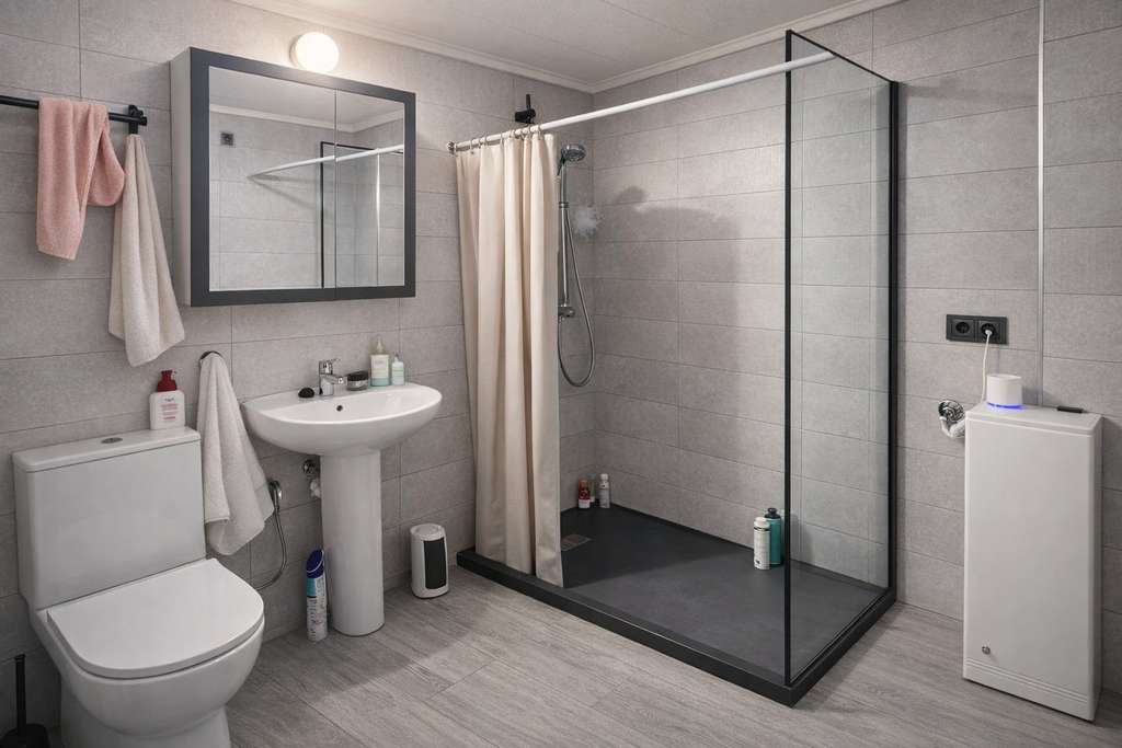 Entre sus comodidades adicionales, la propiedad dispone de aire acondicionado, plazas de aparcamiento comunitarias descubiertas y duchas comunitarias, especialmente prácticas tras un día de playa.