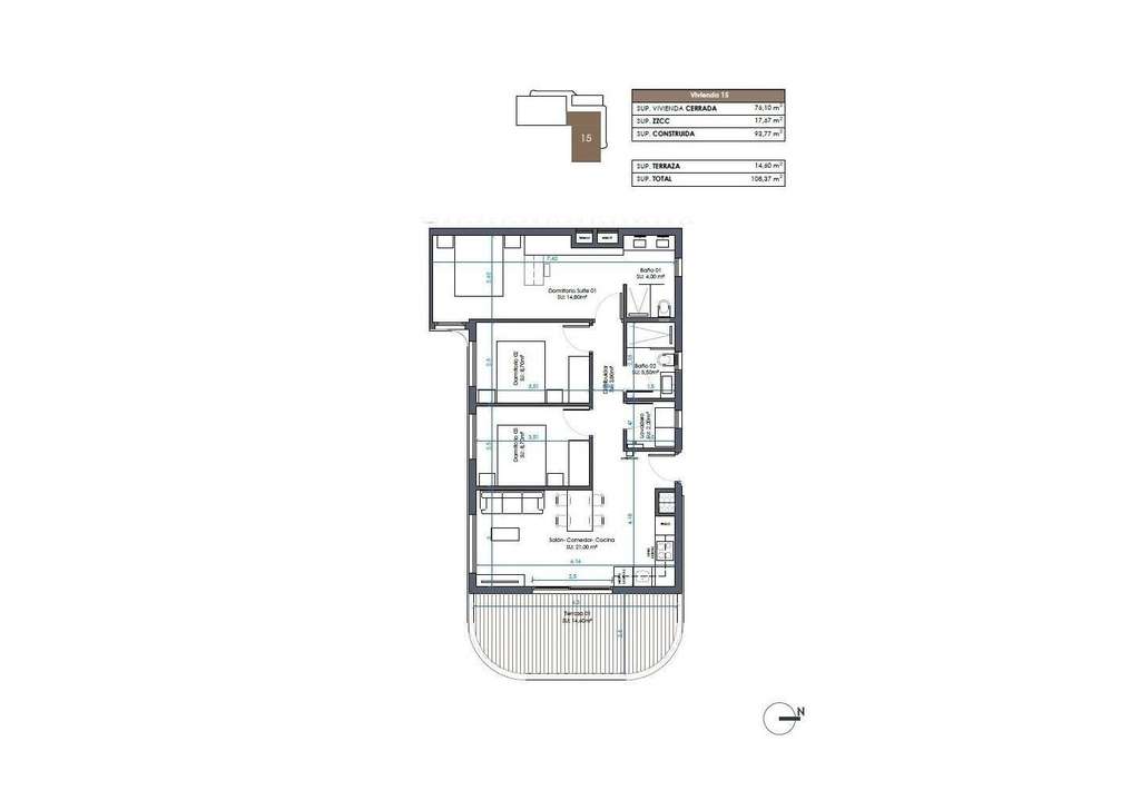 Acabados de primera calidad y características de eficiencia energéticaDiseñadas para ofrecer comodidad y sostenibilidad, cada vivienda incluye:Puerta de entrada reforzada para mayor seguridadCocina totalmente amueblada con electrodomésticos incluidosSistema aerotérmico de bajo consumo para agua calientePlaza de aparcamiento privada incluida en el precio