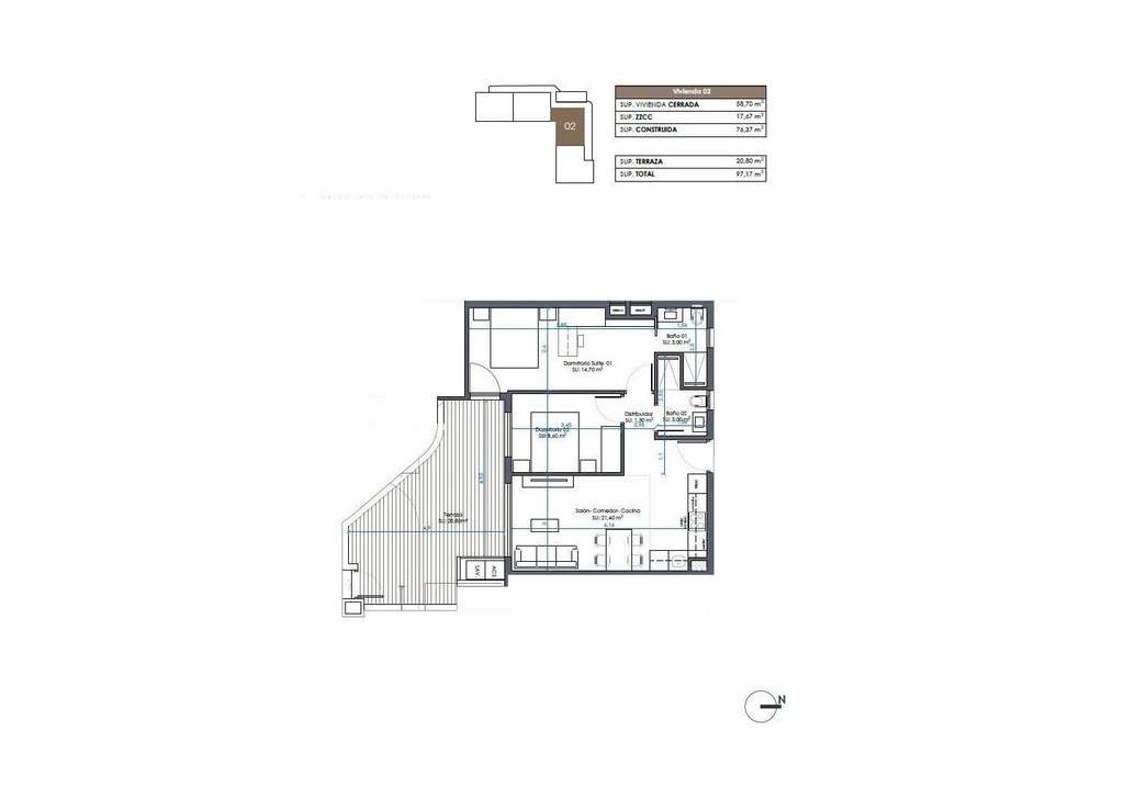 Acabados de primera calidad y características de eficiencia energéticaDiseñadas para ofrecer comodidad y sostenibilidad, cada vivienda incluye:Puerta de entrada reforzada para mayor seguridadCocina totalmente amueblada con electrodomésticos incluidosSistema aerotérmico de bajo consumo para agua calientePlaza de aparcamiento privada incluida en el precio