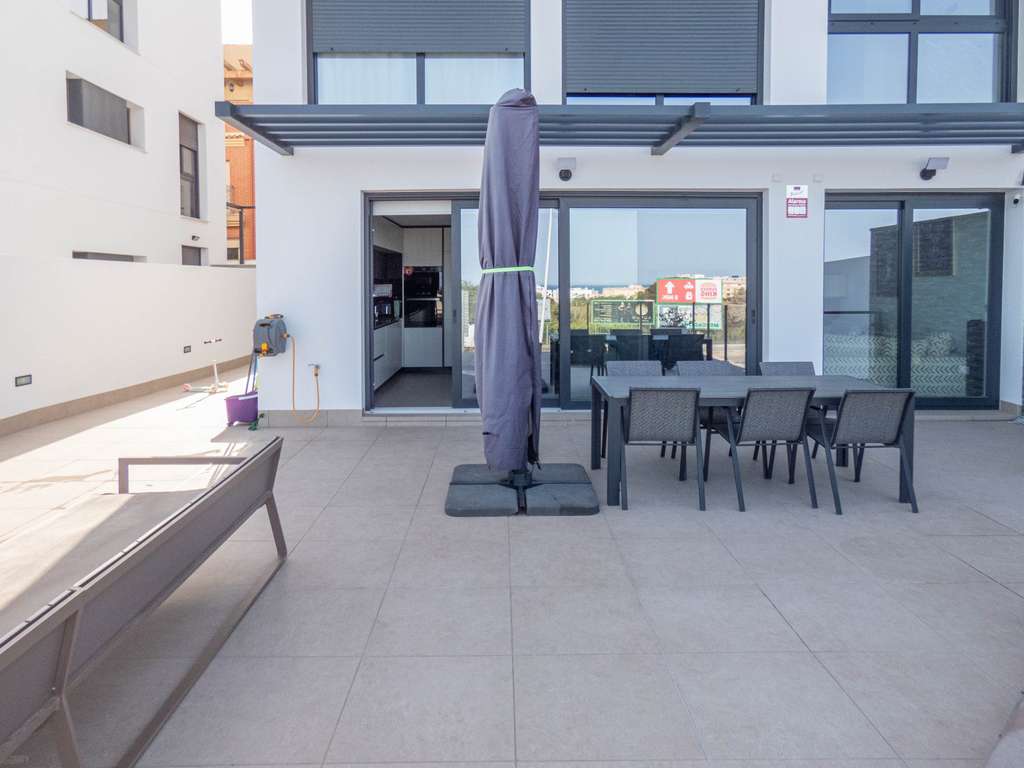 Nos complace ofrecer este FABULOSO APARTAMENTO DÚPLEX EN PLANTA BAJA en las afueras de Guardamar. El apartamento tiene menos de 2 años y tiene una superficie construida interna de 116m2 y una terraza de 93m2. Este increíble apartamento ofrece tres amplios dormitorios, tres baños y un estilo de vida muy moderno y abierto con vistas al mar.Al cruzar la puerta principal hacia la propiedad, encontrará un pequeño pasillo que se abre a un gran espacio habitable. A su derecha tiene una impresionante cocina que cuenta con todos los electrodomésticos que esperaría en una propiedad de calidad como esta. Hay una encimera en isla que proporciona un amplio espacio para preparar la comida y actúa como divisor natural entre la cocina y el salón. El propietario actual ha creado un área de comedor para que la familia y los invitados cenen, se relajen y disfruten de las vistas a través de las puertas corredizas de vidrio. Si sales, tienes una gran terraza de 93 m2 que ofrece un amplio espacio para relajarte con un libro, broncearte o disfrutar de las increíbles vistas al mar. ¡La elección es tuya! Si luego regresa al interior y se dirige a la entrada principal, tendrá un guardarropa que siempre es útil cuando tiene visitas de invitados, seguido por el primer dormitorio de invitados, que tiene su propio cuarto de baño con ducha, armarios empotrados y puertas correderas. a la terraza envolvente.Volviendo a la sala de estar, tiene unas escaleras que lo llevan al nivel inferior a otro pequeño pasillo, donde tiene una puerta que da acceso a un garaje doble. El pasillo también da acceso al segundo dormitorio de invitados, que tiene su propio cuarto de baño con ducha y armarios empotrados, al que sigue el mayor de los tres dormitorios y que clasificaríamos como dormitorio principal, que también cuenta con armarios empotrados. y un baño privado. Ambos dormitorios tienen acceso a una terraza inferior, desde donde se accede a la parte trasera del garaje. Esta increíble propiedad se encuentra a pocos pasos de la piscina comunitaria que está a la izquierda de la propiedad y está disponible por 469,950 euros y está decorada con un alto nivel y se beneficia de las siguientes características:Aire acondicionado por conductosCocina modernaPiscina ComunitariaVendido sin mueblesIncreíbles vistas al marGarage dobleLa propiedad está en una ubicación brillante, ofrece impresionantes vistas de la costa y está a pocos pasos de restaurantes, tiendas y bares, así que ¿qué más se puede pedir? La visita es solo con cita previa, así que contáctenos ahora para concertar esa visita o obtener más información sobre esta oportunidad. Gracias por mirar.