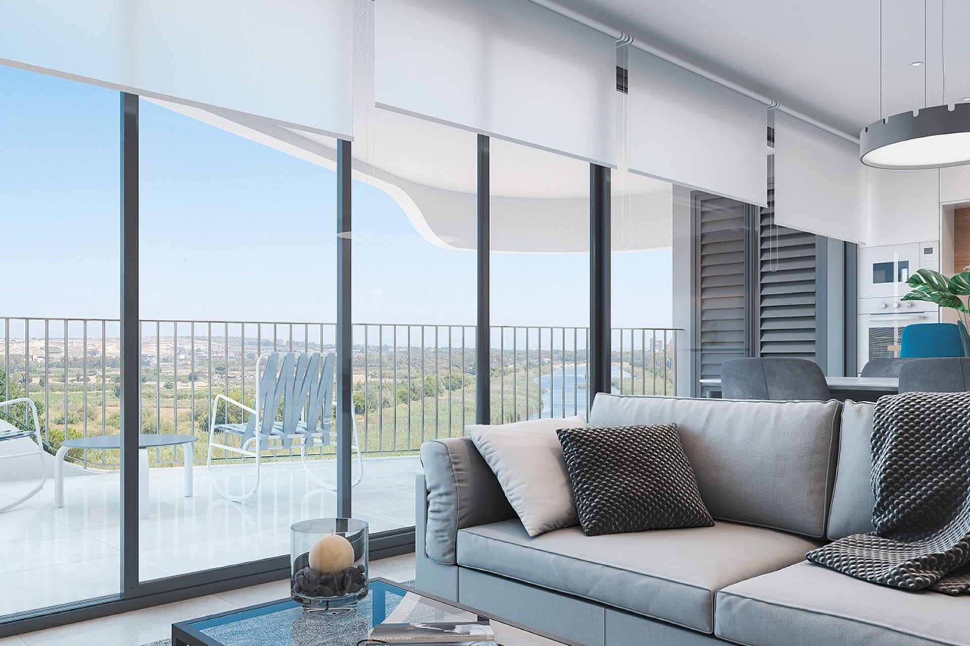 Cada vivienda dispone de una generosa terraza con vistas panorámicas, ideales para disfrutar de la brisa marina y compartir momentos inolvidables. El complejo está equipado con una elegante piscina comunitaria, rodeada de zonas de descanso, que convierte las áreas comunes en un verdadero oasis de relajación. Además, cada apartamento incluye una plaza de aparcamiento al aire libre dentro del recinto cerrado, garantizando comodidad y seguridad.