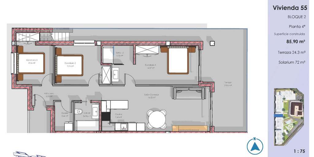 La promoción ofrece apartamentos de 2 y 3 dormitorios con diferentes distribuciones para adaptarse a cada estilo de vida. Elija entre viviendas en planta baja con jardines privados, apartamentos en plantas intermedias con amplias terrazas o áticos con soláriums privados, ideales para disfrutar del clima mediterráneo durante todo el año. Todas las viviendas se entregan totalmente amuebladas y listas para entrar a vivir, incluyendo cocinas totalmente equipadas con electrodomésticos y cuartos de baño completos con muebles, espejos y mamparas de ducha.