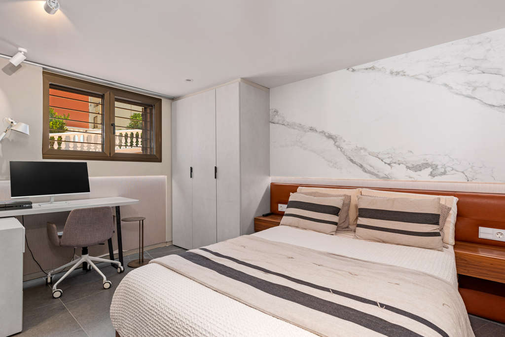 En la planta semisótano de la propiedad encontramos un amplio salón, gimnasio, 3 dormitorios, 2 baños y un lavadero con mucho espacio par almacenamiento. En la planta principal encontramos un salón comedor a dos alturas, que goza de unas amplias vistas al mar. Además, en esta planta encontramos una cocina americana de diseño italiano totalmente acabada y dotada de equipamiento de las mejores marcas. La planta primera de la vivienda cuenta con una habitación principal, con baño y balcón. También 2 dormitorios más y 1 baño.