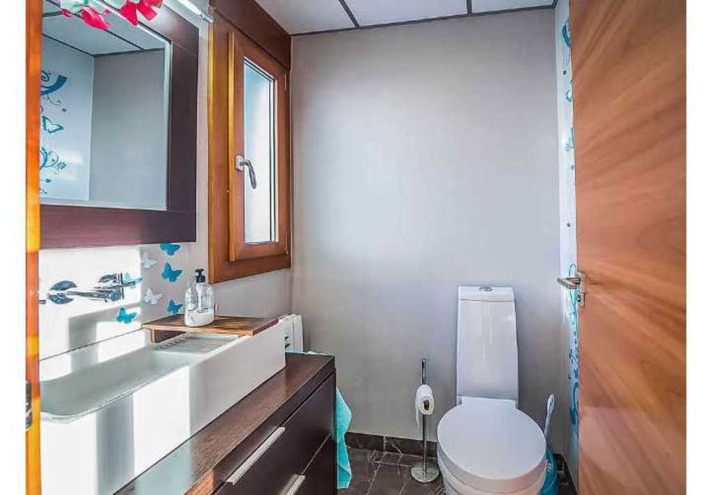 Esta hermosa casa adosada está situada a 100 metros de la playa central de Guardamar y tiene fantásticas vistas al mar. 247 m2 construidos, distribuidos en 3 niveles - sótano, planta baja y 1er piso. La cocina, salon-comedor y el aseo de invitados se encuentran en la planta baja. En el 1er piso se encuentra el dormitorio principal con vestidor y balcón, otro dormitorio individual con armario empotrado y baño común. 2 dormitorios más con baño común y un segundo salón se encuentran en el semi semisótano. También en la planta de sótano hay un gran patio, que aporta luz natural a todas las habitaciones. El acceso al garaje subterráneo privado con trastero también se encuentra en el sótano. Esta casa también tiene un solarium con impresionantes vistas panorámicas.