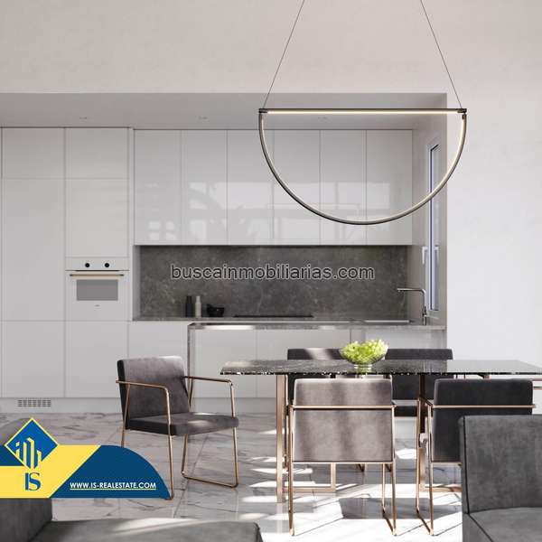 Cocina equipada con electrodomésticos Bosch y encimera de porcelánico o cuarzo compacto.
