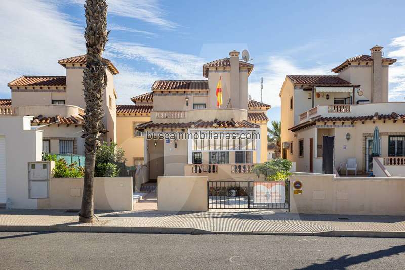 Acogedora villa en venta en la urbanización El Raso, Guardamar del SeguraDescubra esta encantadora villa en perfecto estado de conservación situada en la popular urbanización El Raso, en Guardamar del Segura. La propiedad ofrece una combinación ideal de comodidad, espacio y tranquilidad, a poca distancia de las hermosas playas de la Costa Blanca.Se accede a la villa a través del aparcamiento privado y una acogedora terraza, perfecta para disfrutar de la vida al aire libre en España.En el interior encontrará un luminoso salón, completamente amueblado con, entre otras cosas, una mesa de comedor, sillas, un sofá relax, un mueble de televisión y una chimenea. Tanto el aire acondicionado como los ventiladores garantizan un clima interior agradable durante todo el año.La cocina abierta, que conecta directamente con el salón, está equipada con todos los electrodomésticos necesarios.En la planta baja hay un dormitorio completamente equipado con cama doble, mesitas de noche, vestidor, aire acondicionado y ventilador. El cuarto de baño de esta planta fue renovado en 2025 y cuenta con una moderna ducha, inodoro y lavabo.La planta superior ofrece un segundo dormitorio con vestidor (sin cama) y un cuarto de baño también renovado con ducha, lavabo e inodoro. Desde el pasillo se accede a una amplia terraza soleada, donde se puede disfrutar del sol con total privacidad.Una gran ventaja es el sótano, dividido en tres habitaciones independientes. El sótano cuenta con aire acondicionado, suelo de baldosas, dos ventanas, armarios, nevera y congelador, y es accesible tanto desde el interior como desde el exterior, lo que lo hace ideal como espacio adicional, sala de ocio o trastero.La vivienda dispone de aire acondicionado en todas las habitaciones y ventiladores en el salón y los dormitorios. En la parte trasera de la vivienda (accesible a través de una puerta que da a la calle) hay una piscina comunitaria, donde podrá relajarse.Los gastos de comunidad son de solo 360 € al año, incluyendo el mantenimiento de la urbanización, la piscina, el agua y la electricidad de las zonas comunes.Esta vivienda está lista para entrar a vivir y es ideal como residencia permanente, casa de vacaciones o inversión en la Costa Blanca.