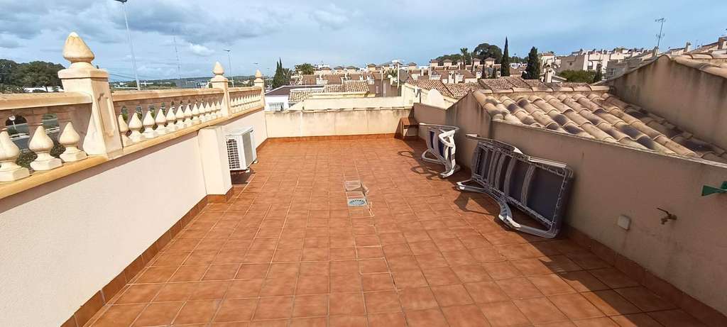 Descubre este encantador chalet pareado ubicado en la deseada zona de Guardamar del Segura. Con una superficie construida de 82 m² y orientación sur, esta propiedad cuenta con tres amplios dormitorios dobles ideales para familias o grupos que buscan comodidad. Disfruta del confort de dos baños completos y una gran cocina americana perfecta para tus momentos culinarios. La vivienda se complementa con un solárium privado de 20 m² donde podrás relajarte al aire libre y disfrutar del clima mediterráneo. Además, dispone de terrazas frontal y trasera que ofrecen espacios adicionales para el esparcimiento al sol o cenas familiares bajo las estrellas. El residencial incluye piscina comunitaria ideal para refrescarse durante los meses más cálidos así como plaza de aparcamiento privada asegurando tu conveniencia diaria sin preocupaciones por estacionar tu vehículo cerca del hogar; a tan solo unos minutos caminando encontrarás paradas autobuses cercanos facilitando la movilidad hacia otras áreas locales mientras que la playa se ubica a escasos 600 metros proporcionando acceso rápido a hermosos días junto al mar.