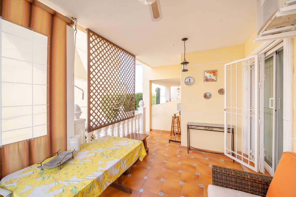En el exterior, cuenta con terraza cubierta y espacios abiertos perfectos para disfrutar del clima mediterráneo, además de agradables vistas a zonas verdes. La propiedad forma parte de una comunidad con piscina, ideal para el descanso y el ocio.