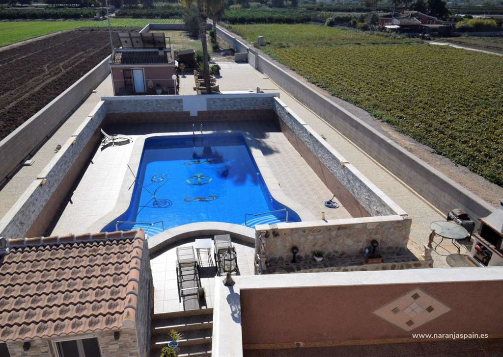 Bonito y lujoso chalet independiente en la Huerta de Guardamar a tan sólo 7 km del mar, tiene una parcela de 4.000 metros y la casa tiene 450 m2, con 6 dormitorios, 5 baños completos, cocina independiente totalmente equipada, sala de estar y comedor con salida a una amplísima terraza acristalada.