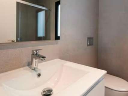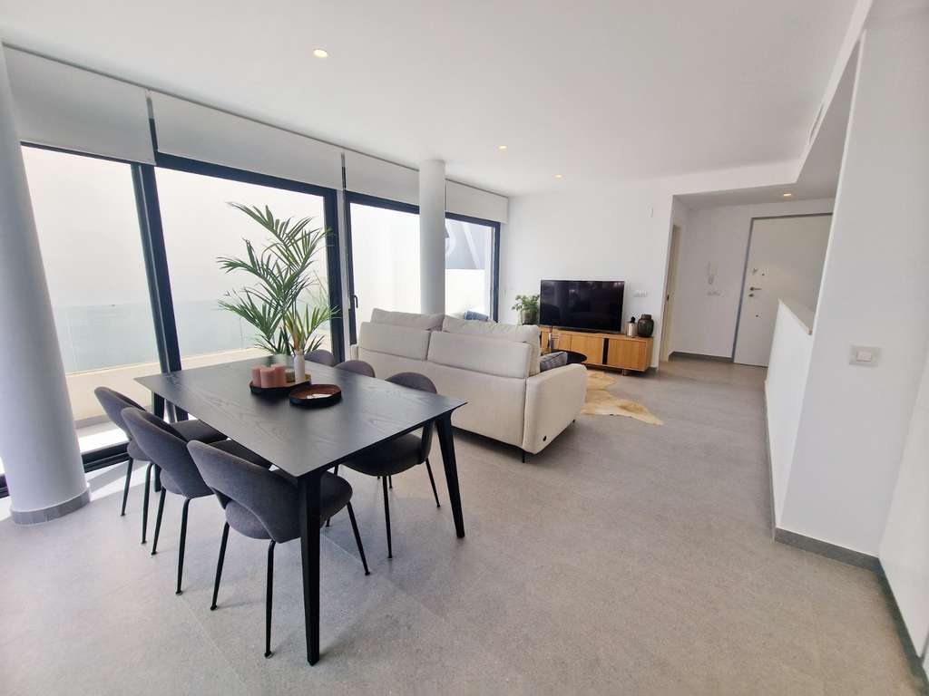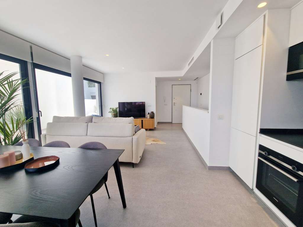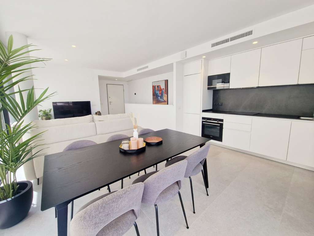 La planta principal cuenta con una elegante sala de estar y comedor de planta abierta , complementada con una moderna cocina totalmente equipada. Los ventanales de suelo a techo conectan el interior a la perfección con una terraza de 40 m² en la planta baja , ideal para cenar al aire libre , recibir invitados o disfrutar del sol español con familiares y amigos.