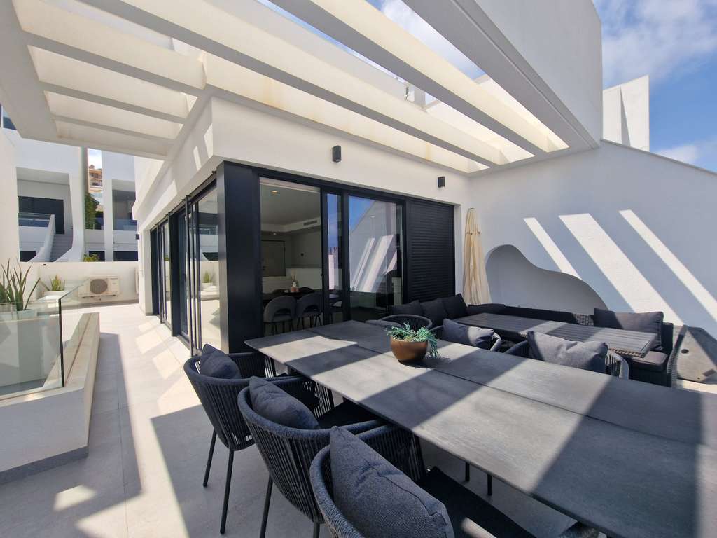 4 amplios dormitorios y 4 baños. Diseño moderno con distribución abierta. Solárium privado en la azotea con piscina Vistas al mar y a solo 800m de la playa. Completamente amueblado, listo para entrar a vivir. Garaje privado y amplias terrazas. Comunidad cerrada en una ubicación privilegiada