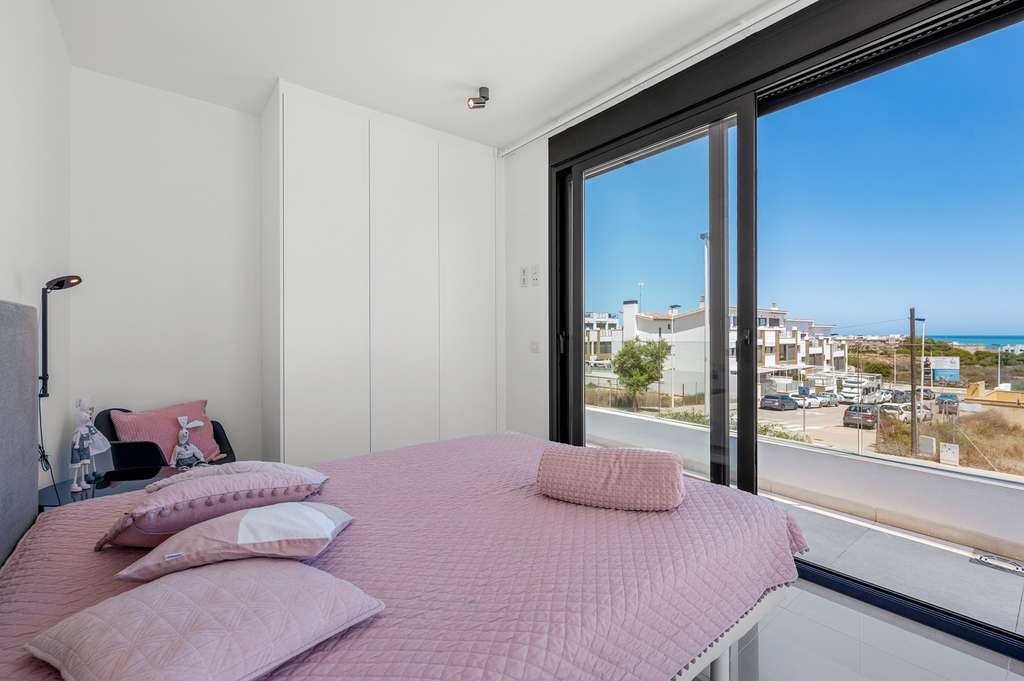 En la planta superior, la suite principal dispone de vestidor y acceso a un balcón privado. Dos dormitorios adicionales con armarios empotrados completan esta planta. Un cuarto dormitorio se encuentra en la planta baja, ideal para invitados o como espacio flexible. La vivienda incluye además cuarto de lavado independiente, trastero y aparcamiento privado en la parcela. Con un diseño cuidado, acabados de calidad y excelente ubicación, esta villa representa un estilo de vida moderno a pocos minutos del mar.