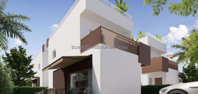 El chalet es independiente, de estilo mediterráneo moderno, de 3 dormitorios con 3 baños y cocina abierta al salón, con parcela privativa, y con zona adoquinada para parking (con capacidad para dos vehículos).