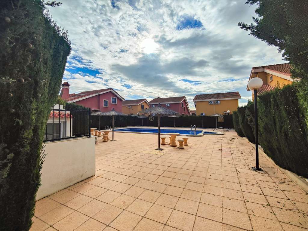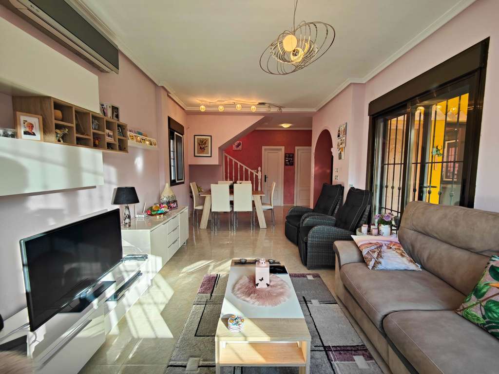 Se vende villa independiente orientado al SUR, con piscina climatizada, en el prestigioso residencial Villas María III, ubicado en la urbanización El Raso – Guardamar del Segura.La vivienda esta situada sobre una parcela de 300 m² y cuenta con aproximadamente 117 m² construidos, distribuidos en dos plantas. Dispone de 3 dormitorios y 3 baños completos, uno de ellos totalmente reformado. El dormitorio principal, situado en la planta baja, cuenta con baño en suite, ideal para mayor comodidad.En la planta baja encontramos hall de entrada, amplio salón-comedor, cocina, un baño completo y un dormitorio con baño en suite.En la planta superior se distribuyen dos dormitorios adicionales, un baño completo y una terraza orientada al sur, accesible desde el pasillo.En el exterior, la vivienda ofrece piscina privada climatizada, ducha exterior, porche, trastero en la parte trasera y una excelente orientación sur, que garantiza luz natural durante todo el día. Además, el residencial dispone de piscina comunitaria.Cuenta con aparcamiento dentro de la parcela, así como una plaza privada y numerada justo delante de la vivienda.La propiedad se vende amueblada y con electrodomésticos, y dispone de aire acondicionado en todas las estancias.Ubicada en una urbanización con bares, restaurantes y supermercados, y a solo 10 minutos en coche de las playas de Guardamar del Segura, esta villa es ideal tanto como vivienda habitual como inversión vacacional.