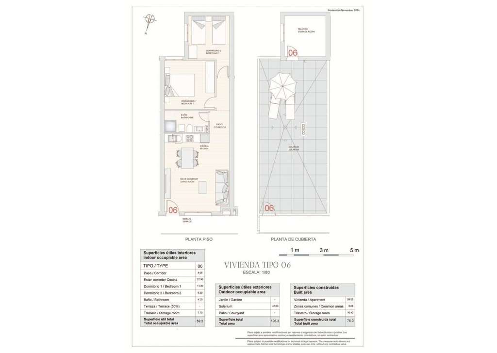 Tipologías de Viviendas para Todos los GustosLas plantas bajas cuentan con terrazas frontales y patios traseros, y tres de ellas ofrecen espacio para aparcar el coche dentro de la parcela privada. Las viviendas en planta alta disponen de solárium privado con trastero, ideales para disfrutar del sol durante todo el año y del excelente clima mediterráneo que caracteriza la zona.