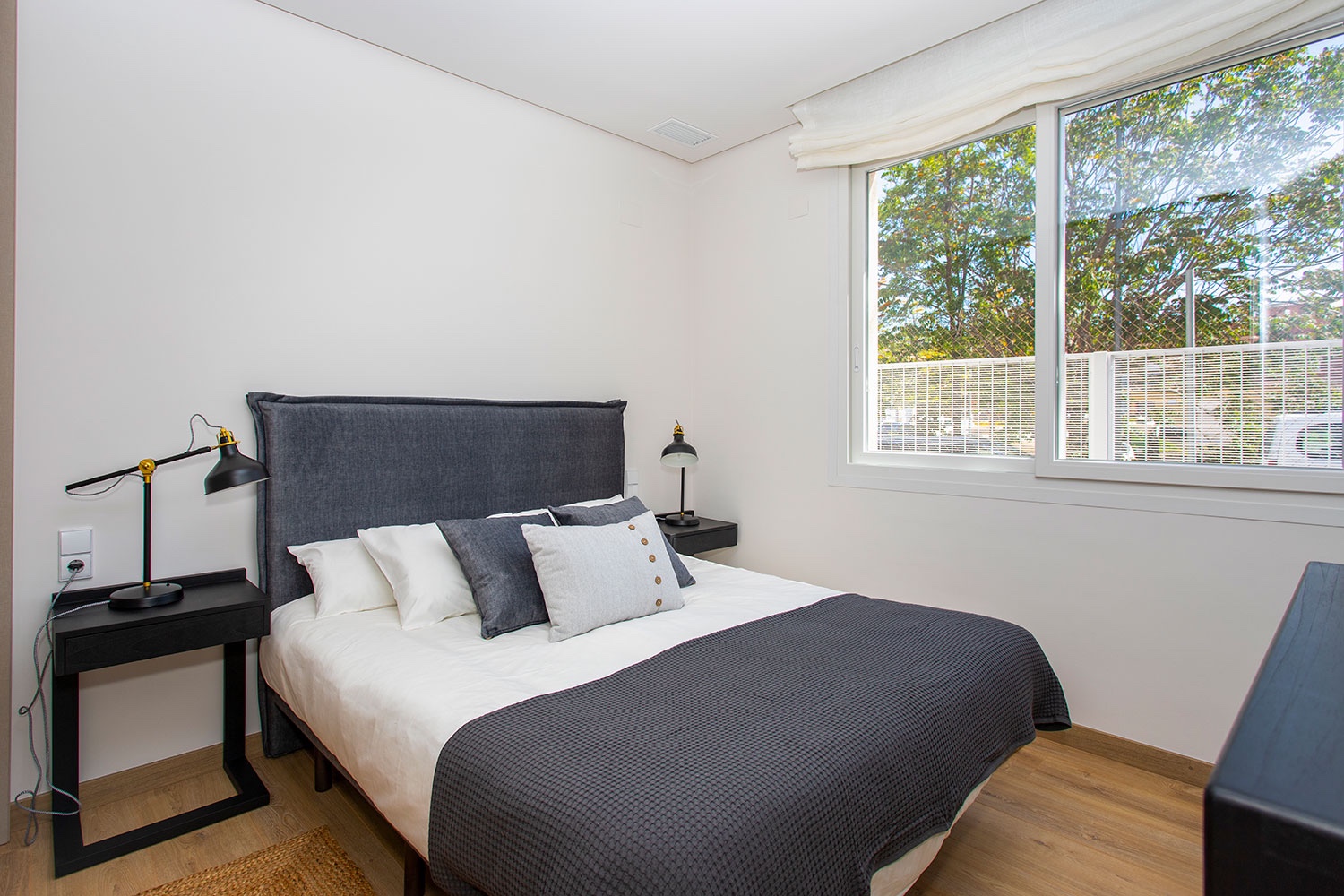 Cuentan también con sanitarios y grifería de primera calidad con cisterna empotrada, sistema de aire acondicionado por conductos, con bomba de calor en plantas baja y primera, ventilación forzada con recuperación de calor, agua caliente sanitaria por aerotermia e instalación de placas fotovoltaicas en cubierta para ahorro energético.