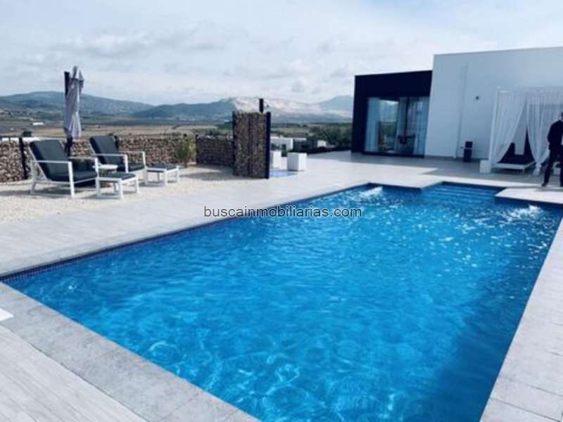 Descubre esta impresionante villa de nueva construcción ubicada en una zona tranquila cerca de La Canalosa, que ofrece vistas espectaculares a las montañas. A solo 4 km de los encantadores pueblos de Hondón de las Nieves y Hondón de los Frailes, y a solo 30 minutos del aeropuerto de Alicante y de la costa, esta vivienda combina a la perfección tranquilidad y comodidad. Características principales: Superficie construida: 170 m² de estilo moderno Dormitorios: 3 dormitorios espaciosos, incluyendo uno principal con baño en suite Baños: 2 baños de diseño (uno en suite y otro familiar) Salón: Amplia zona de estar y comedor de planta abierta Cocina: Distribución abierta (la cocina no está incluida) Aire acondicionado: Instalado para confort todo el año Suministros: Agua y electricidad conectadas Características exteriores: Parcela: 10.200 m² en total, con 3.000 m² vallados de forma segura Piscina: Piscina privada de 8x4 m con terraza alrededor Extras: Ducha exterior y aseo Garaje: Garaje doble incluido Ubicada en la pintoresca y tradicional aldea española de La Canalosa, conocida por sus bares de tapas y tienda local, esta villa ofrece el entorno ideal para quienes buscan disfrutar de la auténtica vida española con estilo y comodidad. ¡Lista en solo 6 meses! Sin largas esperas: el tiempo de construcción es muy corto y tu villa estará lista para entrar a vivir en solo seis meses.