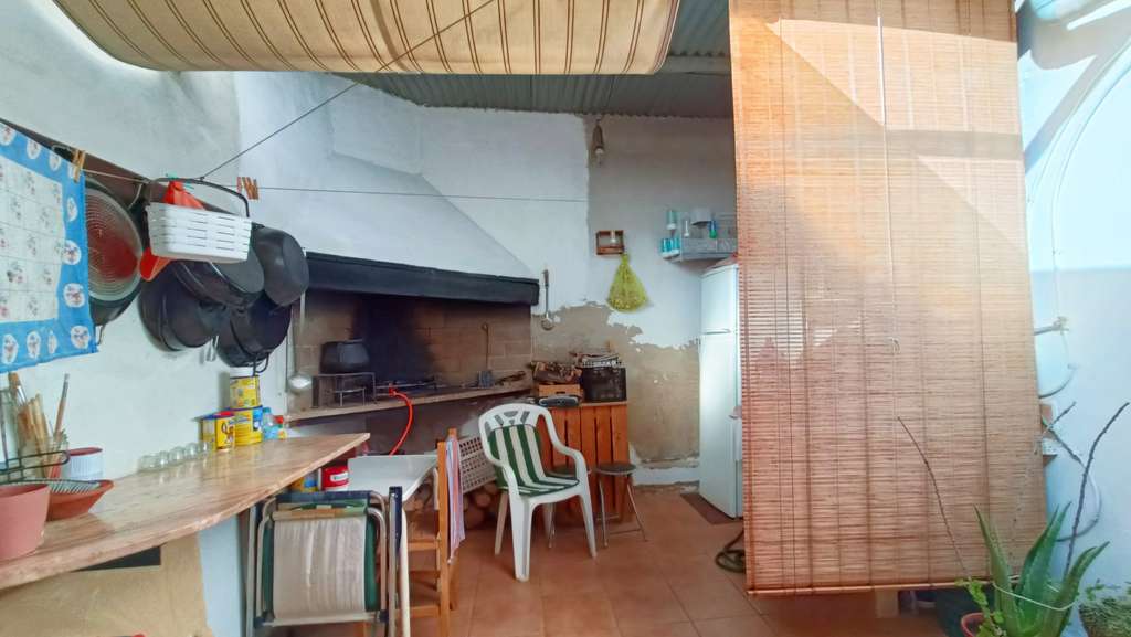 Al entrar, la planta baja te recibe con un dormitorio, un comedor, y una cocina con chimenea que invita a disfrutar de las tardes más acogedoras. Desde aquí, accedes a un patio interior con barbacoa, ideal para reuniones familiares o noches bajo las estrellas.