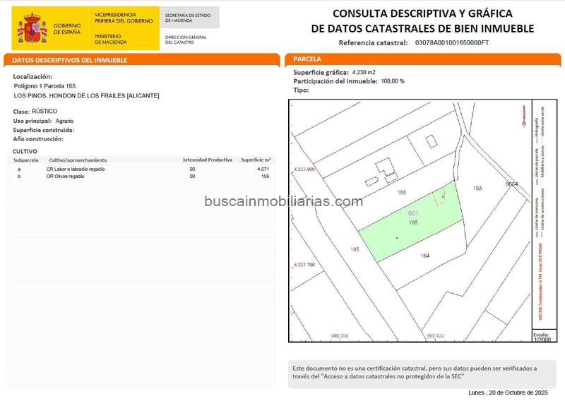 Presentamos en el mercado esta finca rústica ubicada en el encantador Valle del Hondón de los Frailes, específicamente en la zona conocida como Los Pinos.