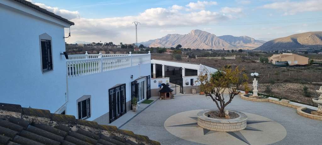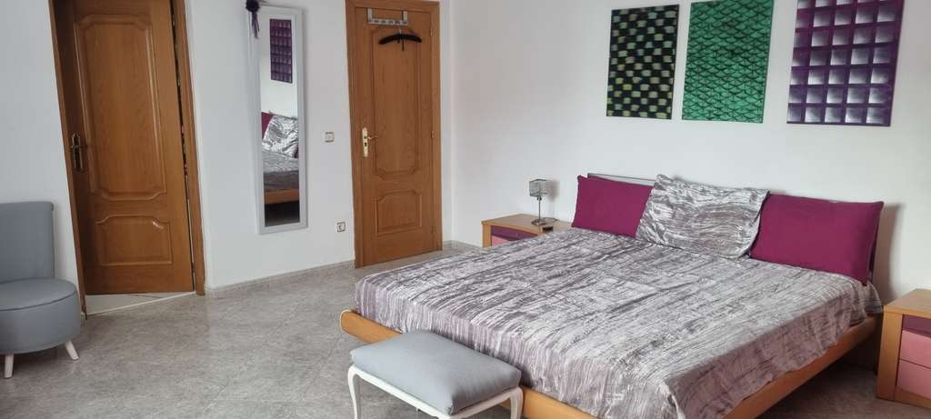 Solo hay una villa como esta, y eso se nota en cada detalle. Para empezar, es una joya para la vista y está equipada con todas las comodidades modernas. Un hermoso portón eléctrico y un amplio camino de entrada con fuente le dan la bienvenida a la parcela completamente vallada. El camino de entrada es de hormigón impreso y está rodeado de hermosas palmeras maduras. También hay una cochera de madera para dos coches, para que pueda aparcar sus coches o motos protegidos del sol. La enorme piscina de 16x5 m le invita a nadar y la terraza que la rodea también ha sido diseñada con mucho gusto. Junto a la piscina se encuentra una cocina exterior con bar, barbacoa y estufa de leña de nada menos que 76 m². La cocina exterior cuenta con cortinas de cristal con película de protección solar y también hay un trastero de 11 m² que puede convertirse en un dormitorio, si desea crear un segundo alojamiento para invitados. En el exterior, también hay una ducha y un aseo separados para después de haber estado en la piscina. La villa en sí es enorme. Se accede a través de la terraza, que cuenta con una mesa de comedor y un amplio sofá. La terraza cuenta con amplios ventanales que permiten disfrutar de las vistas. En la planta baja, hay un dormitorio con baño en suite, un aseo de invitados, un amplio salón con despacho independiente y una amplia cocina con lavadero. La cocina está hecha a medida con encimeras de mármol rojo y una mesa de comedor a juego, también hecha a medida, que también puede usarse como isla. El despacho es la única estancia de la casa que aún no ha sido reformada. Se accede a la planta superior por una hermosa escalera de mármol. El recibidor tiene más de 25 m² y también cuenta con dos amplios armarios empotrados. En la planta superior hay nada menos que cuatro dormitorios, cada uno con su propio baño en suite. Cada dormitorio tiene un estilo y una decoración únicos. La habitación gótica tiene más de 17 m² y el baño, 2,8 m². Desde esta habitación se accede a la gran terraza de la azotea con césped artificial. Desde esta terraza se pueden contemplar las montañas, la piscina y la cocina exterior. El dormitorio morado también tiene más de 17 m² y un baño de 9,8 m². El dormitorio rosa tiene nada menos que 23 m² y el baño es de 8,5 m². Por último, pero no menos importante, está el dormitorio rojo, que tiene poco menos de 20 m² y un baño de 3,8 m². Desde este dormitorio, se accede a la otra terraza en la azotea, que también ofrece vistas a las montañas circundantes. Finalmente, también hay un apartamento completamente independiente en la planta baja con su propia entrada. El apartamento tiene una cocina abierta con un amplio salón-comedor de nada menos que 48 m², un espacioso dormitorio de 18,6 m² con un baño en suite de 7,8 m². La villa está conectada a la red eléctrica, alcantarillado y agua potable. Está a poca distancia de los servicios.