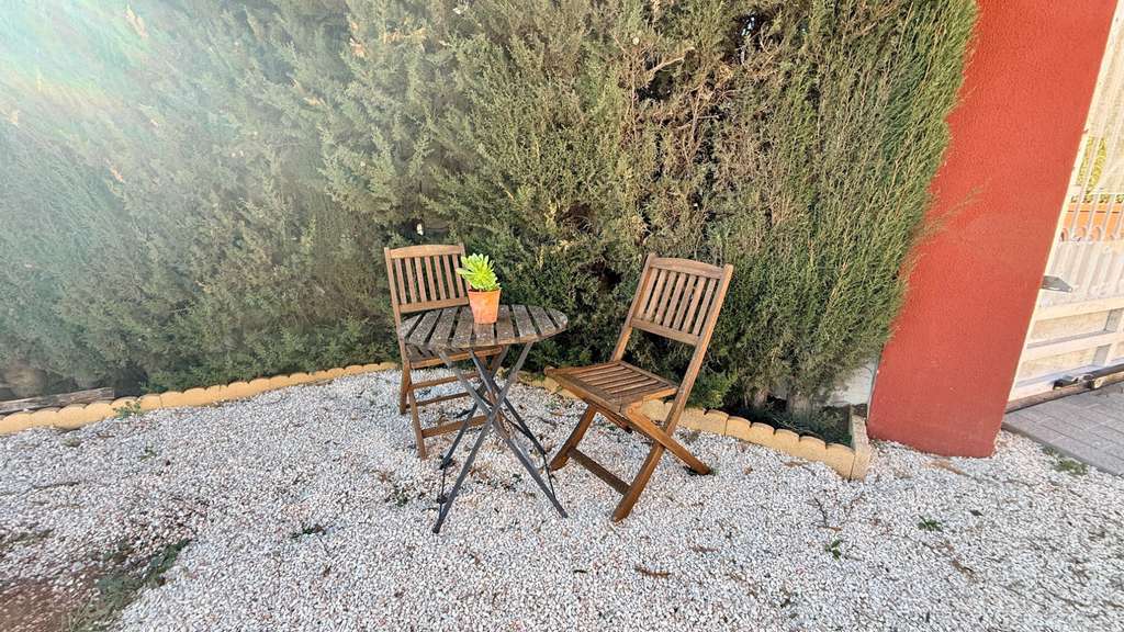 La propiedad se asienta sobre una parcela llana y vallada de 1.151 m², con acceso mediante una puerta corredera eléctrica de hierro con mando a distancia. Dispone de agua potable, electricidad y conexión a internet rápida. El jardín cuenta con árboles maduros que proporcionan sombra, además de higueras y olivos en la parte trasera, y múltiples zonas de plantación ideales para huerto o flores. La parcela es muy privada y las parcelas colindantes no cumplen los requisitos actuales para edificar.