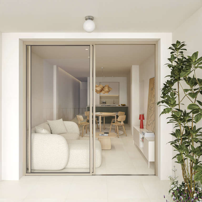 Las viviendas cuentan con cocina amueblada, baño completo, preinstalación de aire acondicionado y persianas eléctricas en salón y dormitorios. Las plantas bajas incluyen patio privado, y los apartamentos en planta primera y segunda disponen de terrazas con vistas despejadas al entorno natural.