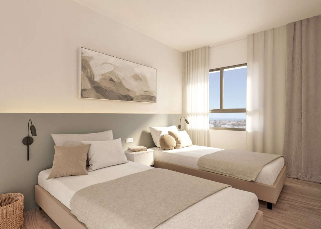 Estos apartamentos de tres dormitorios comprenden; salón / comedor y cocina de planta abierta, 3 dormitorios y 2 baños (1 en suite). La mayoría de los apartamentos cuentan con terraza y los apartamentos de la planta baja tienen jardín privado.