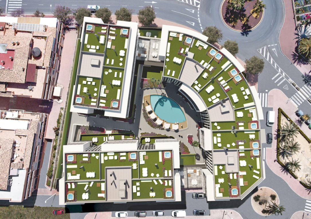 El complejo cuenta con una piscina comunitaria para adultos y una piscina infantil y zona de playa. Zona de biosalud con maquinas de ejercicio. Zona de almacenamiento subterráneo para bicicletas. Área de juegos para niños. Jardines comunitarios ajardinados. Ascensor.