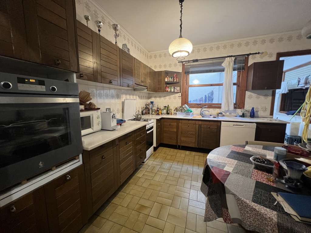 Cocina muy amplia para poder cocinar varios junto a una dispensa para almacenar comida y un patio para poder secar la ropa y limpiarla.